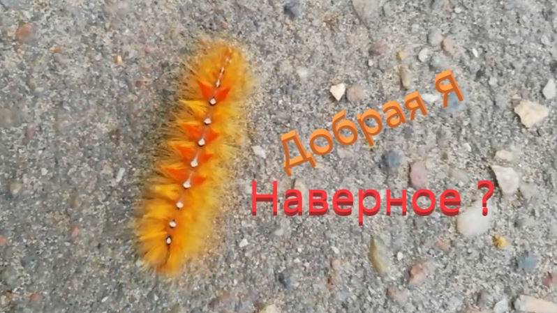 Оранжевая гусеница.Ползёт по асфальту.