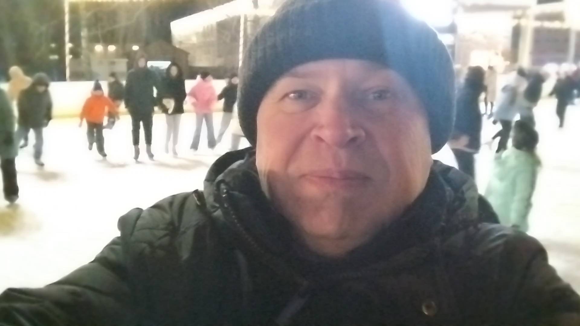 Геннадий Горин на катке. Каток. Люди катаются на коньках