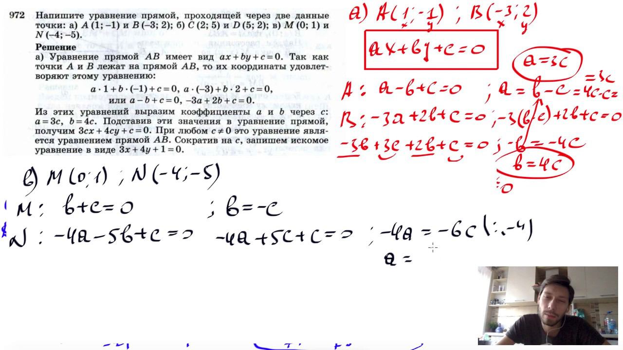 №972. Напишите уравнение прямой, проходящей через две данные точки: а) А (1; -1) и В (-3; 2); б) С (2; 5) и D (5; 2); в) М (0; 1) и N (-4; -5). Поддержать канал рублём - 5469400944002125 (Сбербанк) Мой второй канал для подготовки к ЕГЭ и ОГЭ - https://www.youtube.com/ЕвгенийСумин Инстаграм - https://www.instagram.com/EGE_OGE.math Личный инстаграм - https://www.instagram.com/ee_sumin VK - https://vk.com/evgeniysumin FB - https://www.facebook.com/EvgeniySumin