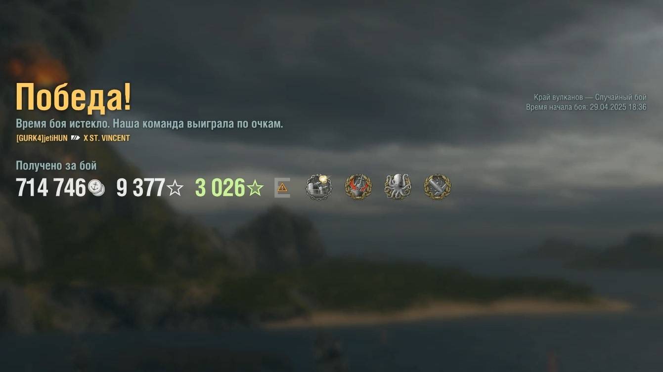 Линкор St. Vincent: +292к урона 8 фрагов на карте Край вулканов - World of Warships