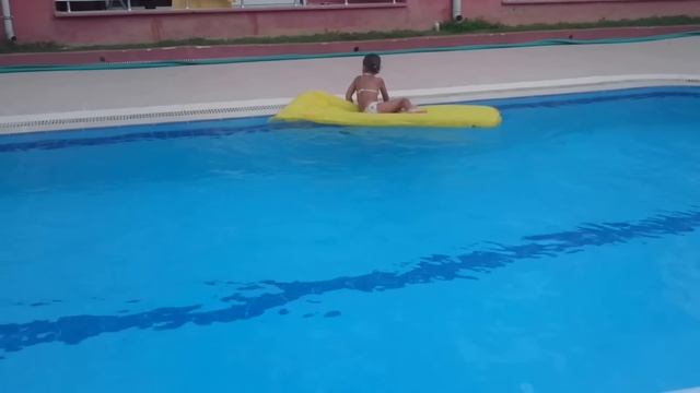 Игра в бассейне. Надувные игрушки. Плаваем на матрасе. Прыгаем в воду Играем в воде. Видео для детей