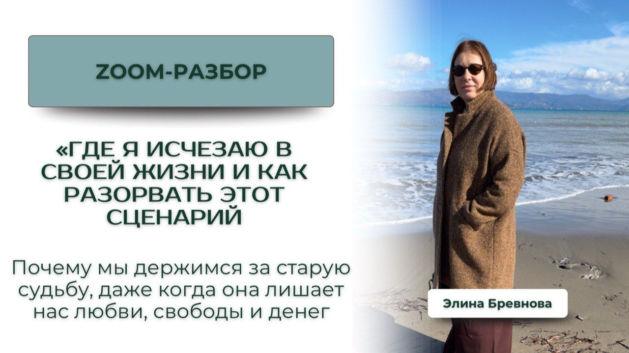 Присоединиться к авторскому курсу "Точка Сборки" можно ссылке https://school.brevnovaelina.com/SBORKA?utm_source=rutube Почему мы держимся за старую судьбу, даже когда она лишает нас любви, свободы и денег? Дорогие мои, 1 февраля в Zoom прошёл прямой эфир в формате живых разборов участниц. МЫ ПОГОВОРИЛИ: 1. Почему человек бессознательно воспроизводит родительскую судьбу? 2. Как формируется запрет на успех, деньги и самостоятельность? 3. Почему «хочу изменений» не равно «могу выдержать новую жизнь»? 4. Как детские эпизоды формируют взрослые финансовые и партнёрские сценарии? 5. Что такое экстрактивная интроекция, «похищение самости» и разрывы идентичности? 6. Почему без сепарации от родовой системы масштаб невозможен? Ключевая мысль эфира - мы не застреваем в кризисах и проблемах случайно, мы поддерживаем непрерывность жизни, даже если она болезненна. ❗️Выход в новую жизнь всегда связан с тревогой, пустотой и ощущением «меня там нет», потому нам нужно выдержать утрату старой идентичности. Приглашаю к просмотру тех, кто пропустил полезный эфир-разбор! __________________________________ Подписывайтесь на мои соцсети: Телеграм канал: https://t.me/+--DufNH8ZeI0MjNi ВКонтакте: https://vk.com/elinabrevnova Канал YouTube: https://youtube.com/channel/UCKShJeYON6cuDZvXvzrTH8g Все мои программы: https://taplink.cc/elina_brevnov *Инстаграм: https://instagram.com/elina_brevnova *Принадлежит Meta, признана экстремистской организацией, запрещена на территории РФ
