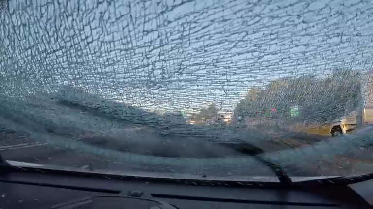 Где-то в Штатах. Кусок шины отлетел из под колес едущей впереди машины.