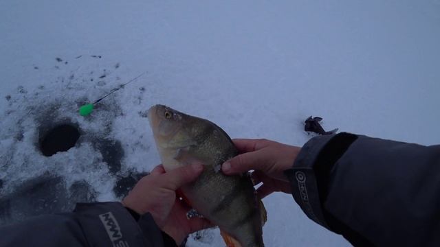 #окунь на безкивковку ❄️🎣🐳💥🔥 #зимой на пруду #пруд #зима #лед #по_льду #рыбалка #рыба