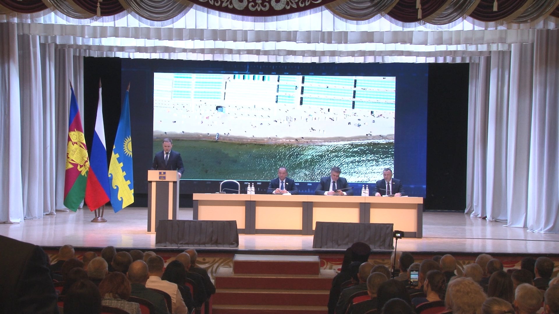 Василий Швец выступил с докладом в Городском театре на открытом заседании сессии Совета депутатов. Его провел спикер местного парламента Леонид Красноруцкий. Также в мероприятии приняли участие первый заместитель губернатора Кубани Игорь Галась и председатель Законодательного Собрания Краснодарского края Юрий Бурлачко.