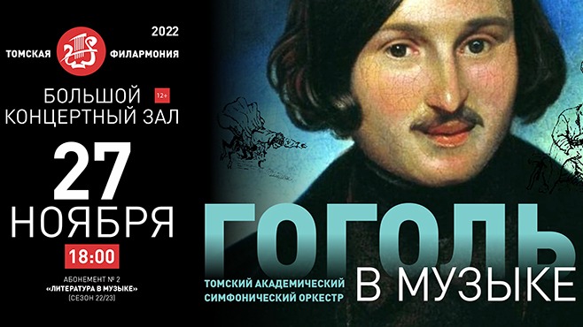 «Но если и музыка нас оставит, что будет тогда с нашим миром?» - этими словами завершает Гоголь одну из своих «Арабесок». Они не были случайными в его устах. Гоголь – один из редких литераторов XIX века, который писал о музыке. И писал много, рассуждая о различных музыкальных жанрах и формах, о сущности музыки, как рода искусства. В кратких своих заметках, разбросанных по многочисленным его произведениям, статьям, письмам, Николай Васильевич выступал и как историк музыки, и даже как музыковед. В этом смысле он порой невольно играл общественную роль музыкального критика. Но и сама проза Гоголя музыкальна. Классик русской литературы создал настолько музыкально-насыщенные образы, что композиторы не могли остаться к ним равнодушными. В оперной, симфонической, вокальной музыке получили отражение практически все сюжетно-образные сферы творчества Гоголя: лирика, романтика, реальность, фантастика, сатира, гротеск. Полуторавековая музыкальная гоголеана насчитывает десятки композиторских имен, среди которых – Мусоргский, Чайковский, Римский-Корсаков, Шостакович, Шнитке, Буцко, Щедрин. На концерте «Гоголь в музыке» в исполнении Томского академического симфонического оркестра под управлением Игоря Берендеева прозвучат сочинения Шнитке, Римского-Корсакова, Мусоргского без которых сегодня невозможно представить образ того, кто выдумал «птицу тройку». Там где Гоголь, – там мистерия и феерия народного праздника. ТОМСКИЙ АКАДЕМИЧЕСКИЙ СИМФОНИЧЕСКИЙ ОРКЕСТР Художественный руководитель и главный дирижер – Владимир ПОНЬКИН Дирижер - Игорь БЕРЕНДЕЕВ Литературные ведущие - Евгений ШЕВЕЛЕВ и Олег СТРЕЛЕЦ
