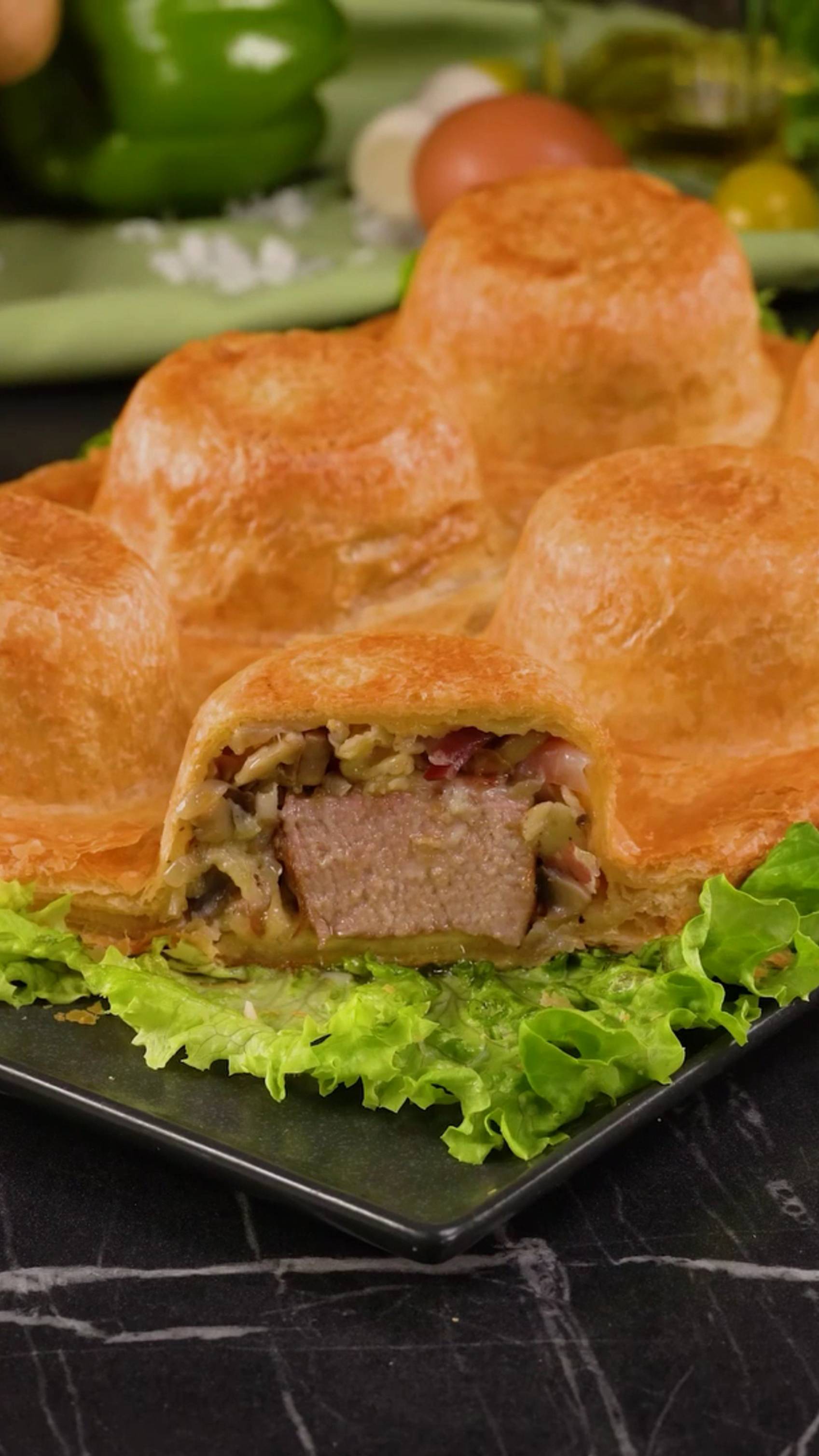 Я делаю это каждый год на Пасху! Рецепт мяса, который вас покорит! Ингредиенты слоеное тесто: 800 г лук: 3 шт грибы, шампиньоны : 350 г чеснок : 20 г черный перец: 1 г соль: 2 г бекон: 125 г свиная вырезка: 1 шт черный перец: 2 г соль: 2 г сушеный чеснок: 2 г мягкое сливочное масло: 180 г НА СРЕДНИЙ ОГОНЬ: 4 МИН НА СРЕДНИЙ ОГОНЬ: 4 МИН сыр : 120 г яйца : 1 шт Соус майонез: 100 г сладкий перец, красный: 2 шт растительное масло: 30 мл соль: 1 г чеснок : 3 зубчика лимонный сок : 20 мл петрушка : 20 г черный перец: 1 г соль: 1 г Текст атрибуции Royalty Free Music: Bensound.com License code: WZ7EJDWVWX3QXZDQ