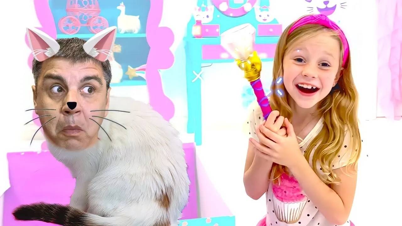 Настя Мэгги и папа веселая история для детей про волшебную палочку.