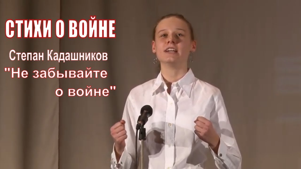 Стихотворение «Не забывайте о войне» С. Кадашников. Стих читает Маша Паршина Гимназия №1543 город Москва ко Дню Победы 75 лет. Актёры, телеведущие, чиновники, дети читают стихи о войне на► Официальном сайте ? http://kadashnikov.ru ►С. Кадашников в YouTube ? https://www.youtube.com/kadashnikov ►С. Кадашников в ВКонтакте ? https://vk.com/kadashnikov ►С. Кадашников в Instagram ? https://www.instagram.com/stepankadashnikov "Не забывайте о войне" Не забывайте о войне. Cвоим потомкам передайте Как гибли прадеды в огне, Вы подвиг предков не предайте. Не забывайте обелиски На месте подвигов былых. Пускай война уже не близко, Вы, всё же, помните о них. Не забывайте, в праздный час, О тех, кто на войне остался. Гордитесь теми, кто за Вас В последний, смертный, бой поднялся. Не забывайте никогда Заплаченную ими цену. Храните в памяти, тогда, Не обесцените победу. Пусть шепчут, в спину Вам, враги: - Забудьте след былых времен... Но прошлый опыт говорит: - Забыл победу - побежден! Не забывайте о войне. Держите флаг победы выше. Наказывает жизнь, вдвойне, Победу и беду забывших. @Степан Кадашников Стихотворения Степана Кадашникова про войну для детей и школьников. Дети читают стихи школьники 3-11 класс. Твардовского, Ахматовой, Симонова о Афганистане, о Чеченской, стихи ко дню, защитника Отечества. Детские стихи, для начальных классов, 5-6 классы школы, про войну, про Родину, Защитникам отечества, на конкурс стихов, великие стихи. Начало войны 22 июня, 1941 года день памяти, Песни про войну до слез . Ветер войны, Летела с фронта, похоронка, праздник 23 февраля, День защитника Отечества, Строчки Твардовского, о войне и победе, Неизвестные поэты, короткие. Стихи о войне 1941-1945 г. Лучшие строки о Великой Отечественной на 9 мая День Победы, про войну в Афганистане, о чеченской. Военные строки 1941 года, Военный стих для детей и школьников. "Не забывайте о войне". Стихотворения для детей про Великую Отечественную войну. Летела с фронта похоронка. Ветер войны, на конкурсы Прерванный бег. Степан Кадашников. 22 июня 1941 года День памяти и скорби.Стих великая война, для начальной школы, пробирают до слёз, Военные песни, военных лет, Рассказы и конкурсы, для детей, о великой войне, Стих великая война, К 9 мая, День победы, 70 лет победы, для детей, и школьников, младших 1-11 классов, Война 1941-1945г, Стихотворения для, детей 5-6 класс, Проза русских поэтов, о Великой Отечественной, стих войне, лучшие и известные, маленькие четверостишья, ВОВ 70 лет, Великая Отечественная Война, Поэты Анна Ахматова, Константин Ваншенкин, Расул Гамзатов, Юлия Друнина, про войну, Михаил Исаковский, Римма Казакова, о великой войне, детям 1941 год, Булат Окуджава, 70 летие победы, военный стих, Алексей Сурков, Арсений Тарковский, Александр Твардовский. Военные строчки, Ветер Войны Степан Кадашников, Летела похоронка, Как было много, Летела с фронта, Про похоронку. Стихи о природе, стихи о войне, стихотворения про осень, про весну, про зиму, про лето, осенние стихи, про березку, про осину, природа России, кадашников о природе, Стихи о военных, о десантниках, песни о десанте и десантниках, о войне в афганистане стихи про великую отечественную стихи про войну к 9 мая читать стихи о великой отечественной войне песни про войну стихотворение про день победы стихи о великой отечественной стихи о войне для школы стихи о войне ко дню победы стихи посвещённые великой отечественной войне ветер войны стих стихи про войну к 9