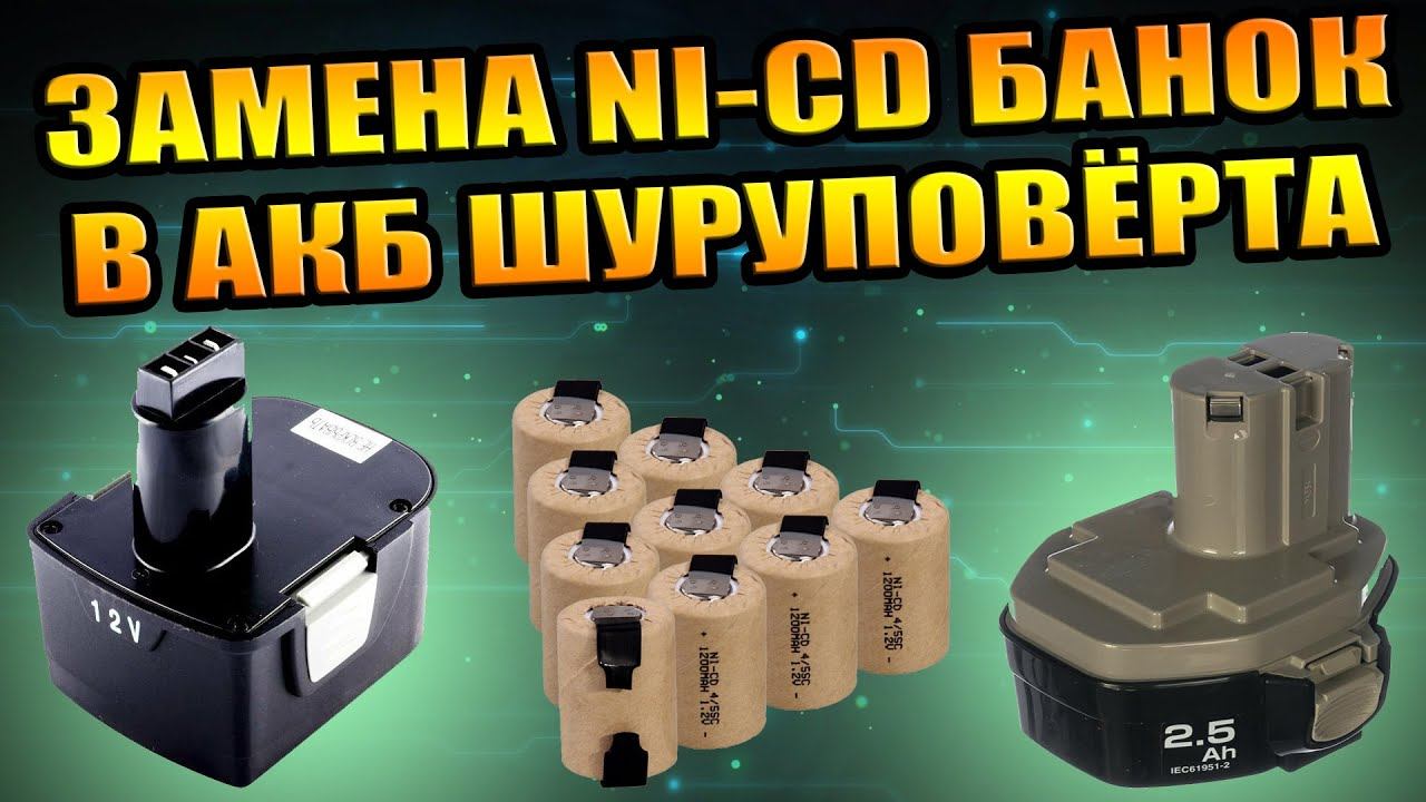 ЗАМЕНА АККУМУЛЯТОРОВ В ШУРУПОВЁРТЕ, Ni-Cd, Никель-Кадмий, 12 вольт, разная высота банок. РЕМОНТ DIY
