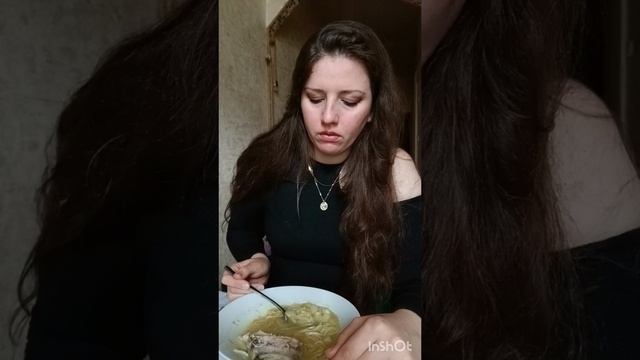 Ем куриный супчик который сама же и приготовила ☺ p.s. огурчик+чесночек=свежее дыхание освежает понимание 😁🤭 #мукбанг#емнакамеру#