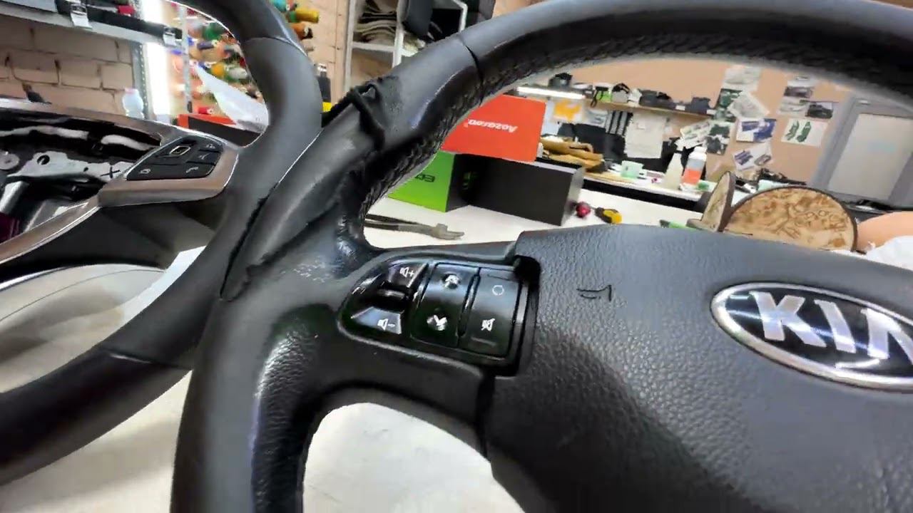 https://vinylkazan.ru/peretyazhka-rulya-kozhej-alkantaroj-v-kazani/ Kia Sportage Перетяжка руля в натуральную кожу. Австрийское качество. Оранжевая строчка.
