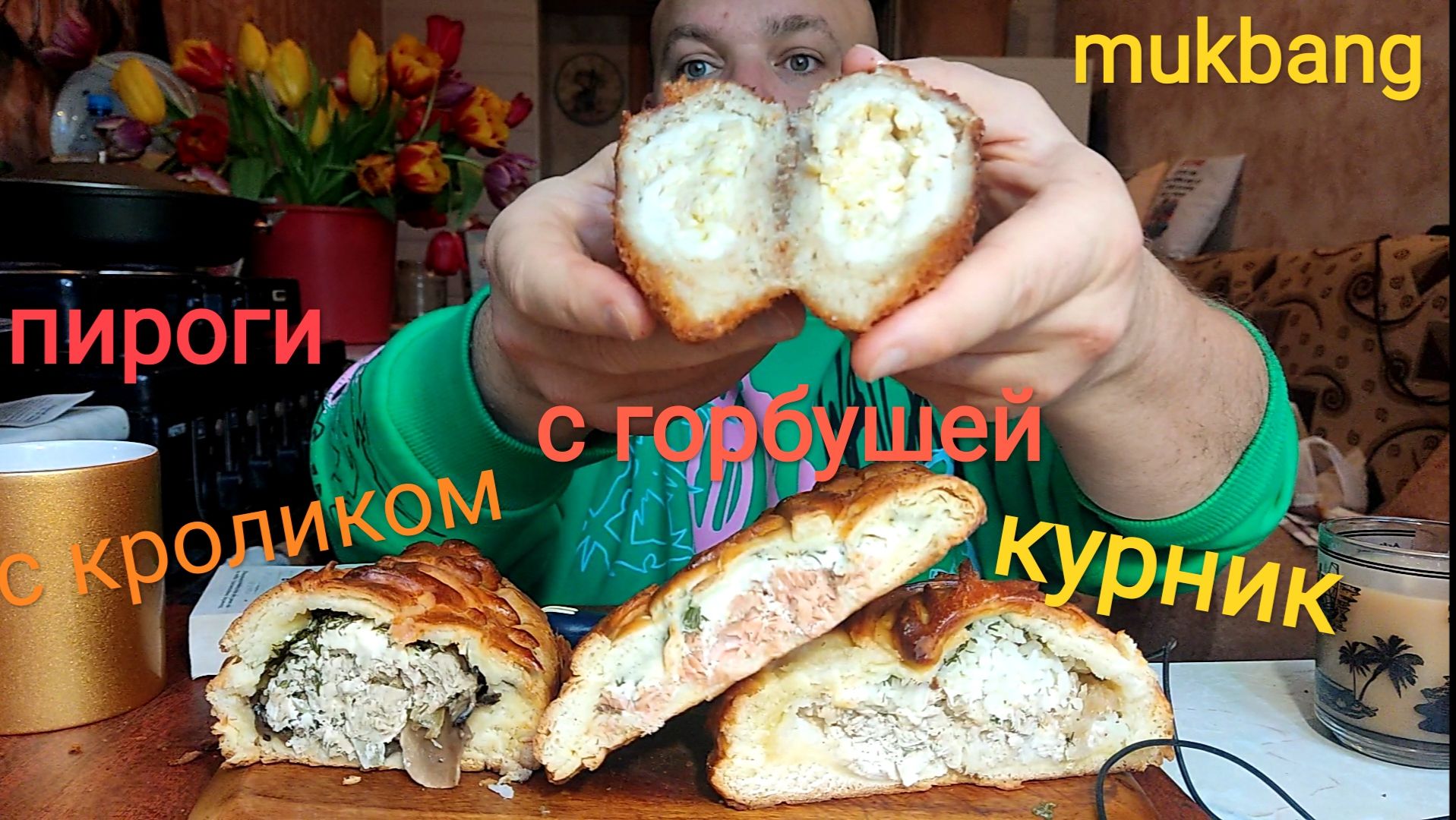 МУКБАНГ ПИРОГИ с кроликом и грибами, Горбушей и сыром/ОБЖОР Курник/еда на камеру