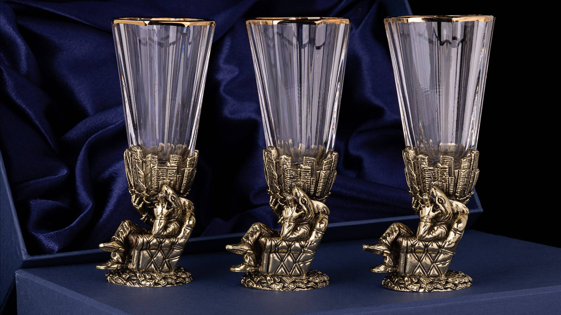 Лафитники Акула бизнеса 3 или 6 шт (Латунь, хрусталь)