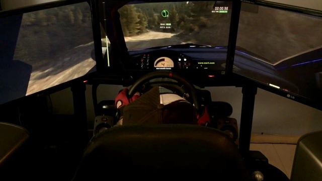 Dirt Rally in a sim racing cockpit driving the Subaru Impreza 2001 in Greece, Pedines Epidaxi Stage 1 track. System Specs: MB: Asus Maximus V Gene CPU: Intel i7 3770K @ 4.6GHz (overclocked) GPU: 2 x nVidia Gigabyte GTX 680 (2GB) SLI Storage: 1 x SSD Kingston HyperX 3K 120GB SATA III + 1 X Seagate 1TB 7200RPM RAM: Patriot 16GB (4x4) DDR3 1600MHz Case: ThermalTake Armor Revo Cooling: Corsair H100 water cooling + 2 x Scythe Gentle Typhoon (2150RPM) PSU: Corsair AX850 (850W) OS: Windows 7 Pro 64Bit Monitor: 3 x LG IPS234v (LED IPS 23" 5ms) Racing wheel setup: Thrustmaster t500rs + TH8RS Speakers: Logitech Z906 5.1 THX Surround System Headset: BOSE Quiet Comfort 3 NZXT Hue (RGB LED)