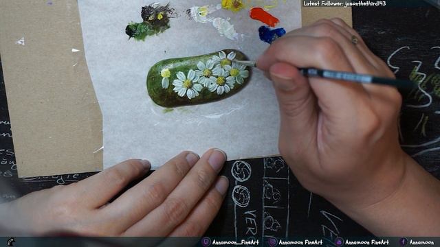 Here you can watch how to paint a rock. This tutorial is an easy to follow full length video of how I painted some daisies. I used following oil paints: titanium white, lemon yellow cadmium red phthalo blue burnt umber sap green My brushes are all from Da Vinci: -Top acryl size 2 - nova synthetics 1570 size 0 - nova synthetics 1270 size 0 Here you can find me: Twitch: https://www.twitch.tv/annamoon_fineart FB: https://www.facebook.com/pages/Annamoon/330676100445825 Instagram: https://www.instagram.com/annamoonfineart/ Twitter: https://twitter.com/Annamoon77 Donation: https://streamelements.com/annamoon_fineart/tip ---------------------------------------------------------------------------------- "Garden music" Kevin MacLeod (incompetech.com) Licensed under Creative Commons: By Attribution 3.0 http://creativecommons.org/licenses/by/3.0/