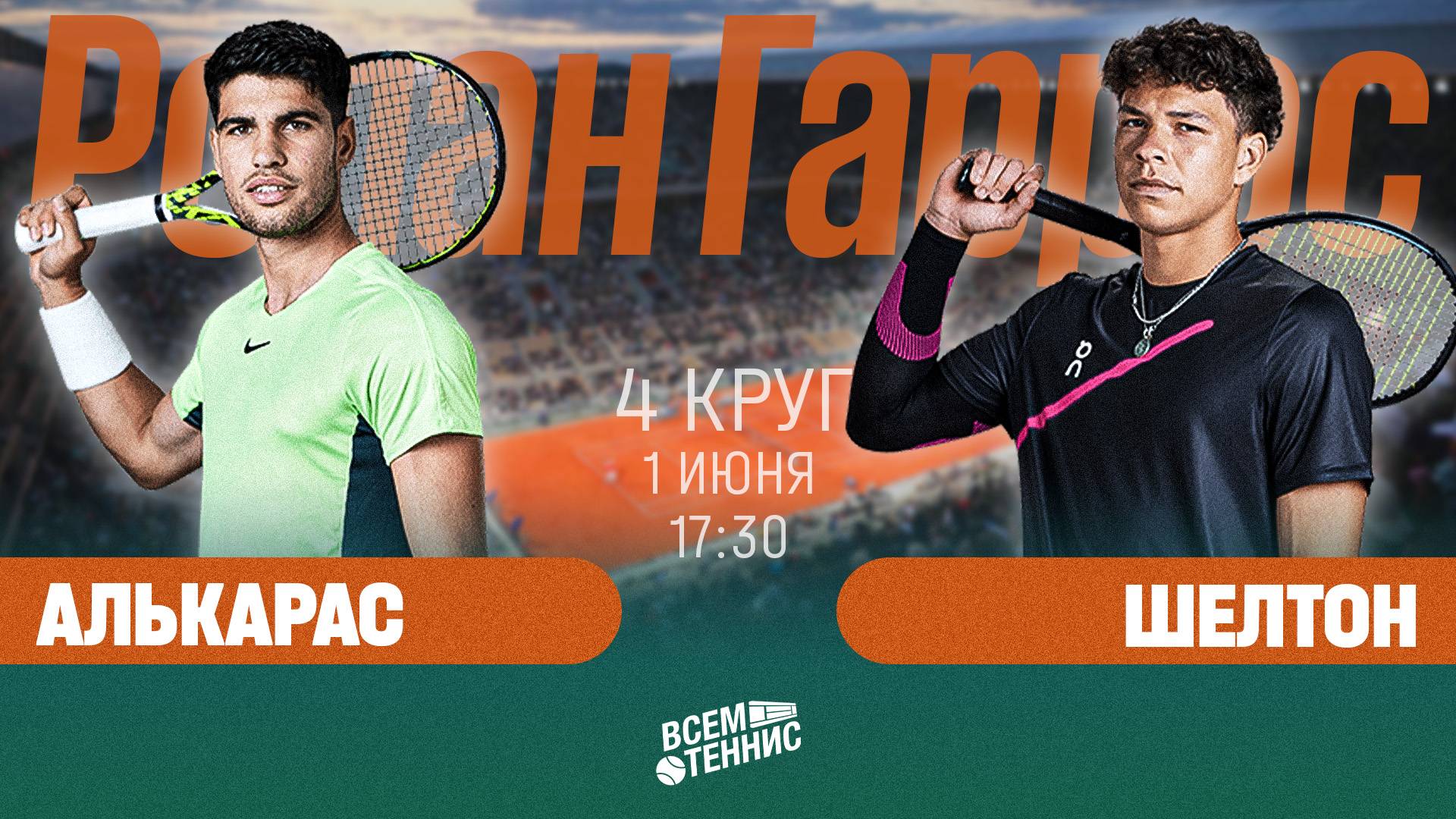 1.06.2025 | 17:30 | Алькарас - Шелтон | Ролан Гаррос | Прямая трансляция