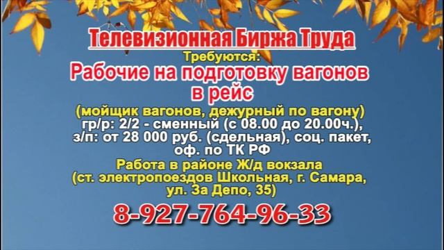 Вакансии и телефоны прямых работодателей в специализированной программе по трудоустройству "Телевизионная Биржа Труда" - г.САМАРА, г.ТОЛЬЯТТИ