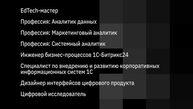 16 онлайн-программ дополнительного образования для студентов любых вузов РФ. Обучение бесплатное и без отрыва от основной учебы. В конце выдаётся диплом о профессиональной переподготовке. Выберите программу и оставьте заявку на сайте: https://itkaftsu.ru/ «Цифровые кафедры» — это проект, который даёт возможность студентам гуманитарных, естественнонаучных и других направлений, которые не относятся к IT, получить дополнительную профессию в области цифровых технологий.