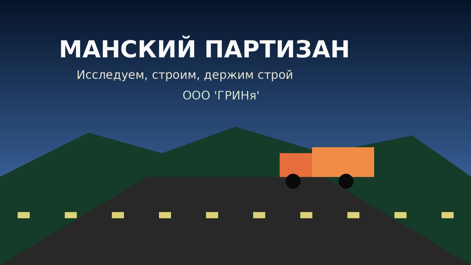 Видеопрезентация проекта «Манский Партизан» от ООО «ГРИНя». На экране — путь от «пустого» участка 6,9 га в Манском районе Красноярского края до живого инфраструктурного кластера: АЗС, придорожный сервис, агро‑и логистические площадки. Внутри ролика — история о том, кто мы, как работаем с землёй, какие форматы участия открыты для землевладельцев, инвесторов и подрядчиков. Фоном звучит авторская песня «Манский Партизан (Исследуем, строим, держим строй)» — музыкальный рассказ о проекте и компании. Видео подходит для показа партнёрам, инвесторам, на встречах и в онлайне: коротко, по делу и с живой эмоциональной подачей. Хештеги: #МанскийПартизан, #ГРИНя, #КрасноярскийКрай, #МанскийРайон, #ЗемельныеПроекты, #Девелопмент, #АЗСПроект, #Инвестпроекты, #Инфраструктура, #ЗемляРусская, #ИсследуемСтроимДержимСтрой Официальный канал научно-исследовательского военизированного товарищества ООО «ГРИНя» (Красноярск, пос. Солонцы).