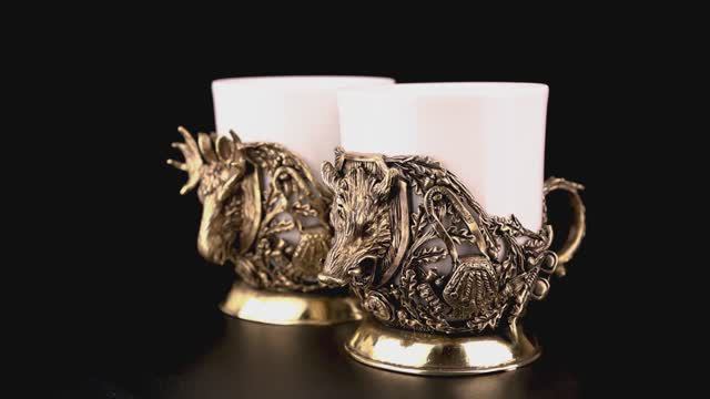 Кофейный набор Трофейный Кабан и лось (Латунь, керамика)