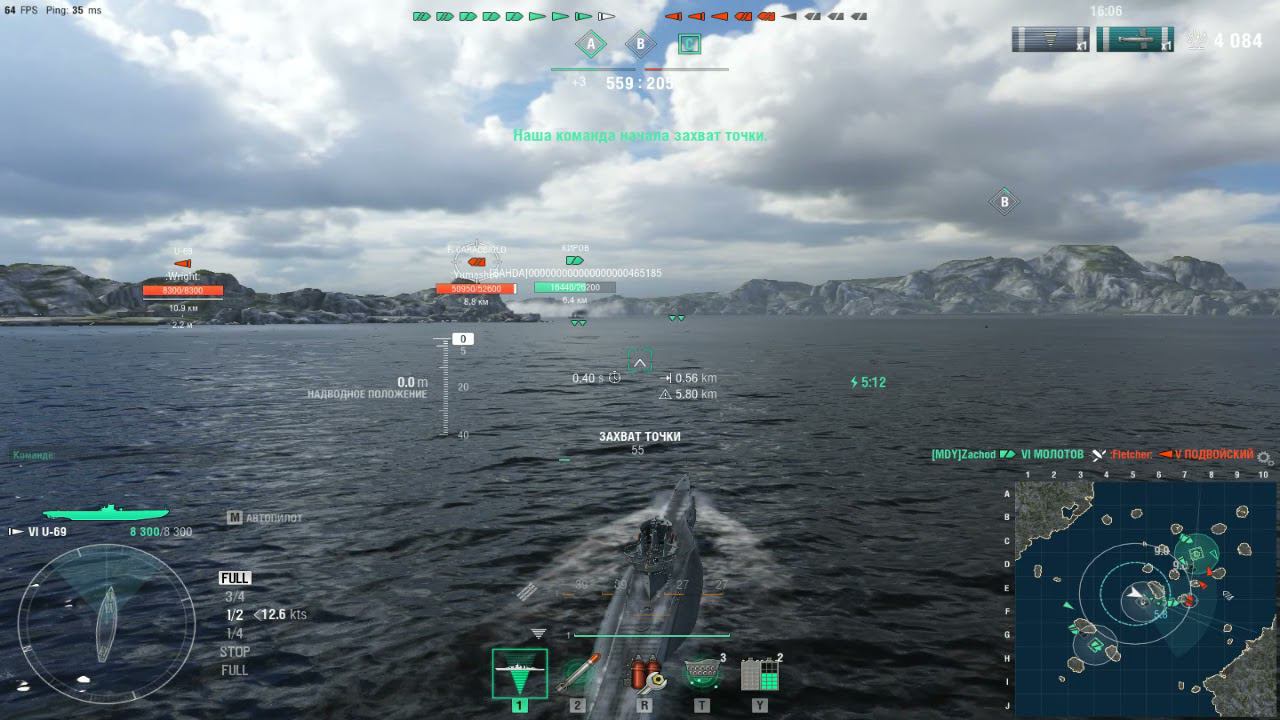 Немецкая подводная лодка U-69.Морской бой-4.Игра World Of Warships