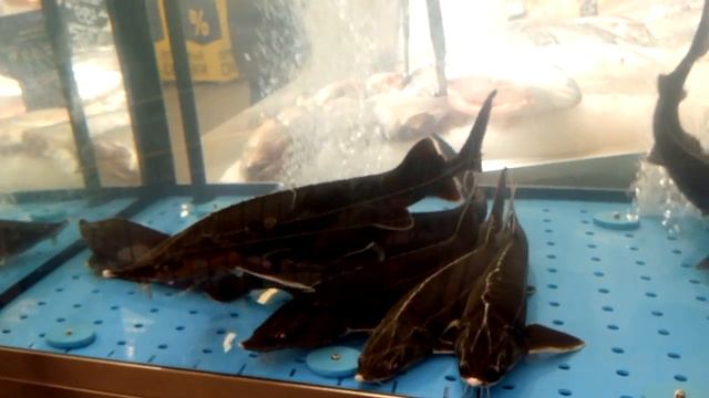 Живой осётр в магазине
