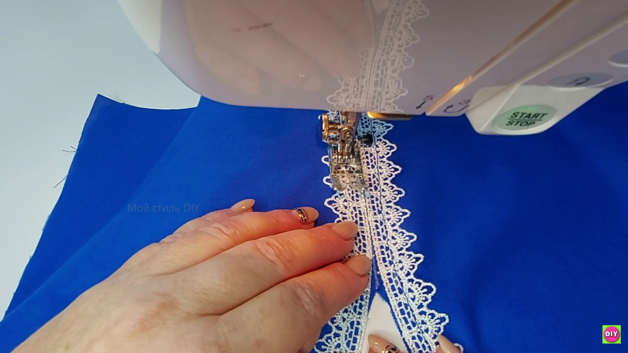 Всего 2 полоски тонкого кружева, а получается так нежно (сочетание цветов летнее, в морском стиле)