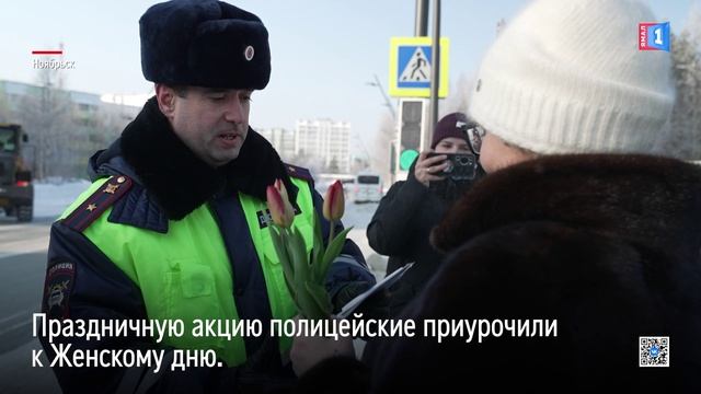 В Ноябрьске автоледи получили цветы от полицейских к 8 Марта