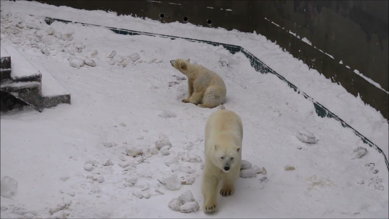 Герда родилась в Москве 20 ноября 2007 года. Её мама Симона, папа Врангель. В Новосибирск переехала 05.08.2008. В 2013 году у Герды и Кая родилась Шилка. В 2015 году она переехала в Японию. В 2015 году родился Ростик. 6 декабря 2018 года он переехал в Китай. В 2018 году родились Норди и Шайна. Данная пара молодых медведей находилась вне экспозиции зоопарка, поэтому посетители не могли их видеть. Передача молодых медведей в другой зоопарк не планируется, — ответили на запрос редакции в пресс-центре мэрии Новосибирска. Но Шайна 20 января 2024 года переехала в Ижевский зоопарк. Белые медведи одиночные животные. Как правило, миролюбивы по отношению друг к другу, но между самцами в брачный период случаются стычки. Взрослые самцы могут нападать на медвежат. Гон с марта по июнь. Продолжительность жизни — максимум 25—30 лет; в неволе рекорд долгожительства — 42 года. Вес очень крупных самцов в некоторых частях ареала 700 и даже 800 кг: есть данные о зверях весом до 1000 кг. Обычно вес меньше. Самки всегда не только меньше, но и значительно легче самцов. Так, самцы в восточной Гренландии в состоянии нормальной упитанности весят 400—450 кг, хорошо упитанные — до 500 кг, самки, даже очень сытые, здесь же редко весят больше 350—380 кг, т. е. их вес составляет около 75% веса самцов. Длина тела на 3-й день после рождения 28—32 см, средний вес — около 755 г (650—840 г). На 26-й день длина тела увеличивается незначительно — до 35—38 см, а вес возрастает до 1125—1275 г. В возрасте 60 дней самцы весят около 7 кг, самки — около 6 кг при длине тела у первых 58—60 см, у вторых 54—58 см. В возрасте 4 месяца медвежата достигают веса 22—23 кг, в 6-месячном возрасте при длине около 110 см — 40—43 кг, в 8-месячном — 58—62 кг. Длина тела в возрасте с 6 до 9 месяцев нарастает по 6—7 см в месяц. Во время зимнего сна рост почти прекращается. В зоопарке медведей кормят утром морской рыбой, хлеб с рыбьим жиром внутри, морковь, яблоки, морская капуста, яйцо дают сырое. Медвежат подкармливают молоком из соски. На ужин мясо (говядина, конина, куры или индейка). Летом и осенью арбузы, дыни, ранетки, кабачки, тыквы, огурцы. Когда показательное кормление летом бросают живую рыбу. Медвежата с медведицей находятся до 2-х лет. 16 декабря 2022 года Герда родила 2-х медвежат. И это две девочки! Имена дали 25 июня. Медвежат зовут Стрелка и Белка. Обзор вольеров белых медведей https://www.youtube.com/watch?v=mAt_b7JD0B4&list=PLGvf0V-rAHxkpGKJaWIZIUxRKgKiqV3xZ&index=17&t=0s