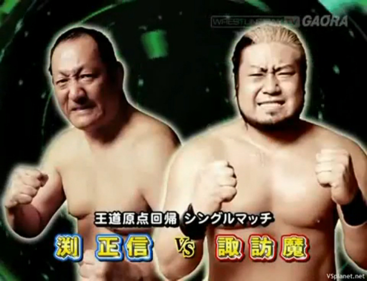 Сувама vs. Масанобу Фучи, AJPW 11.12.2011; Suwama vs. Masanobu Fuchi, AJPW Fans Appreciation Night; http://news.vsplanet.net/24276-ajpw-fan-appreciation-day-2013/