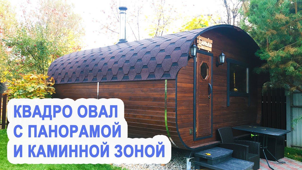 КВАДРО ОВАЛ 4х4,5 МЕТРА ИЗ КЕДРА С ПАНОРАМОЙ И УВЕЛИЧЕННОЙ КАМИННОЙ ЗОНОЙ