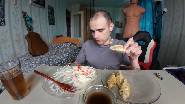МУКБАНГ ДАМПЛИНГИ С КРЕВЕТКОЙ / САЛАТ ОВОЩНОЙ / ОБЖОР / EATING Mukbang / ASMR АСМР