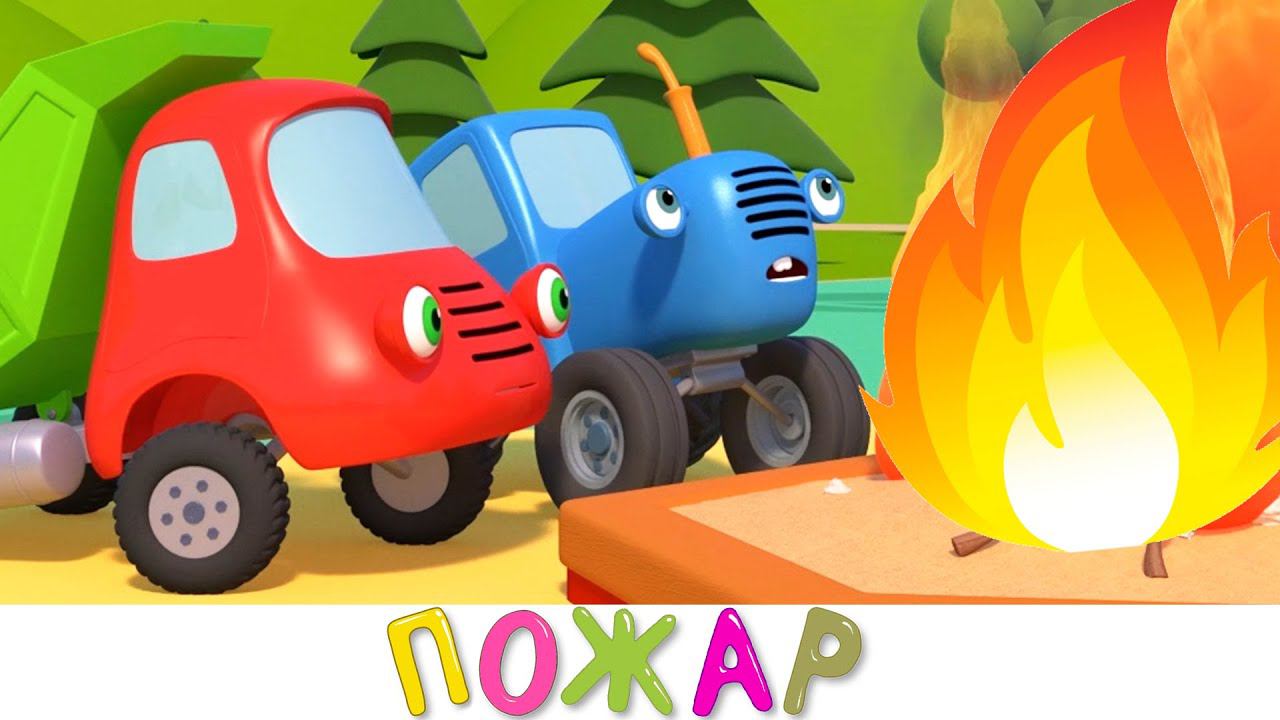Пожарная машина и Пожар в песочнице - Синий трактор и друзья машинки на детской площадке