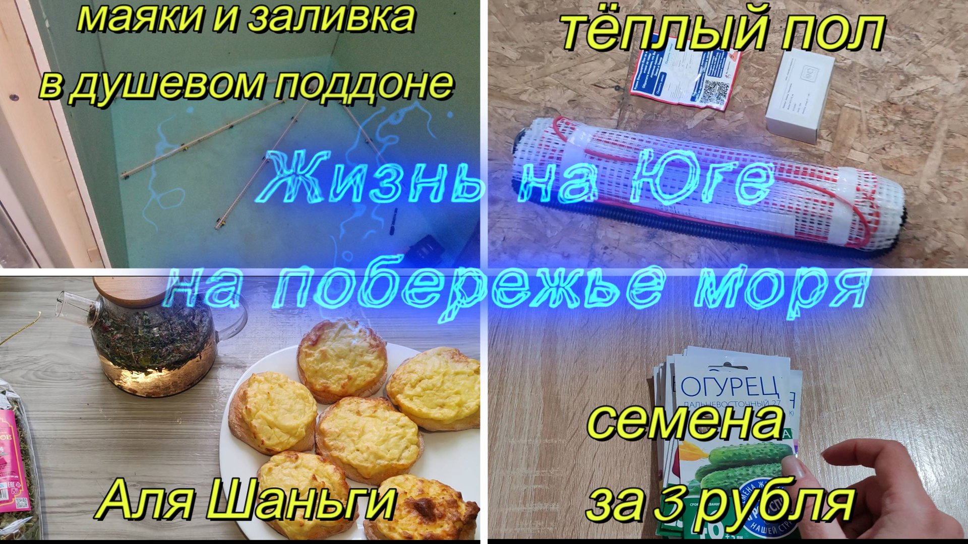 Переехали на Юг, Строим гостевой дом,пришел теплый пол, заливка поддона в душевой, Шаньги, семена