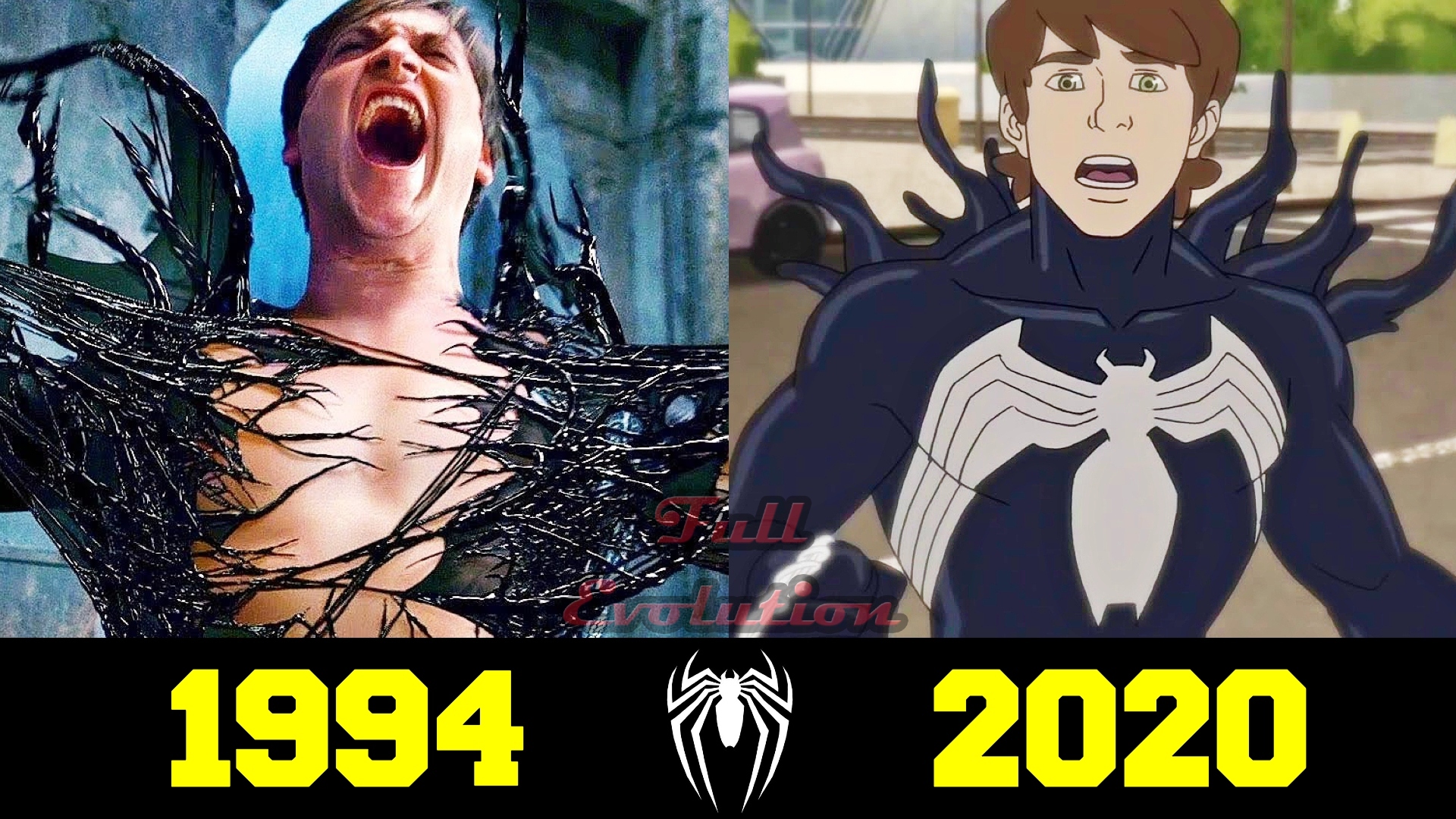 Человек-Паук Симбиот Эволюция - https://youtu.be/9WfbwhPAs_M #эволюция #человекпаук #веном Инопланетный симбиот один из интереснейших персонажей марвел,а больше всего интересно наблюдать за его поглощением носителя.После недавнего выпуска об эволюции Человека-паука в симбиотическом костюме ,я решил продолжить эту тему и сделать выпуск со всеми трансфармациями Питера Паркера в черного Человека-паука.И начнем мы конечно же с мультфильма Человек-паук 1994г.Здесь Паркер после крушения шатла спасает двух астранавтов ,однако на его костюм попадает черная жидкость.Не придав этому значения ,Питер лег спать.Затем он обнаруживает себя в черном костюме, висящем вверх ногами посреди города, не помня, как он туда попал.