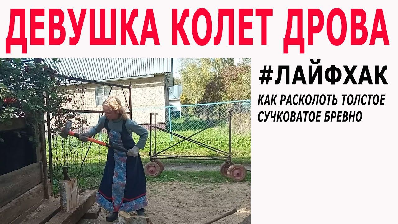 Лайфхак. Как расколоть толстое сучковатое бревно. (Краткая версия)