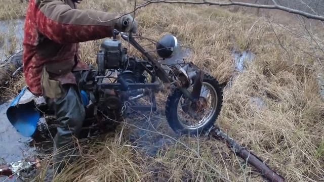 Мото 2х2 второе испытание болотом, мотоцикл плохо работает, согнул заднюю звезду.