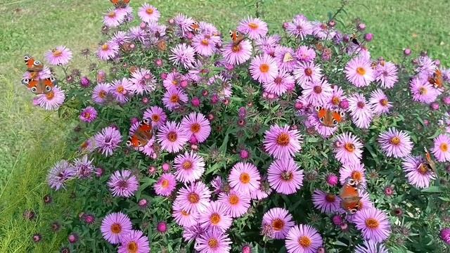 Наша усадьба, осенние хризантемы и запоздалые бабочки.