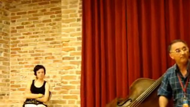 Aleks Zubkerman teaches playing balalaika at folk music fest in Viljandi, Estonia, July 2008.