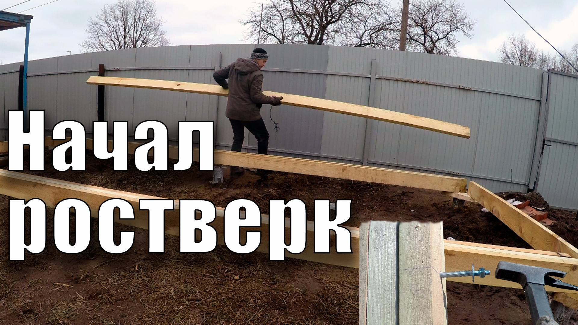 Приобрел адаптер для ручной аккумуляторной пилы. Выпилил доски необходимо размера. Обработал биозащитой. Приступил к сборке ростверка. Установил 4 шпильки. Телеграм канал: https://t.me/koss365_online