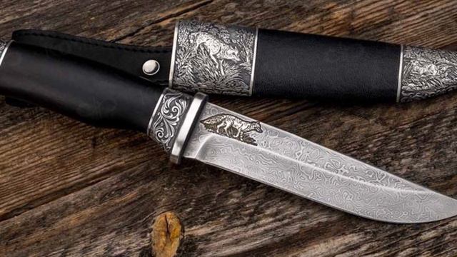 Подарочный нож, украшенный в стиле златоустовской гравюры – красивая вещь и функциональный инструмент одновременно. Нож – это не просто инструмент. И даже не просто заточенная стальная пластина, как записано в законе об оружии. Это друг, помощник, верный спутник, удобное продолжение руки. При покупке ножа не стоит приобретать первый попавшийся на глаза клинок. Идеально, когда нож выбирается с полузакрытыми глазами, по тактильным ощущениям ладони, по чувству, возникшему на кончиках пальцев, если провести по рукояти или голомени клинка. Руки у всех разные, и ладони с пальцами, и привычки, и манера держать нож. Поэтому конкретному человеку подойдет не каждая рукоять и не каждый клинок. Нож, как подарок, тем не менее, вполне распространенное явление, особенно на дни рождения и юбилеи. Это истинно мужской атрибут – от перочинного аксессуара джентльмена до клинка охотника. У разных народов есть масса различных примет, связанных с дарением ножа и с ножами вообще. В одной местности это не приветствуется, а где-то наоборот, считается знаком наивысшего доверия и уважения. Сейчас чаще всего принято дарить нож так же, как дарят домашних любимцев (котенка, щенка) – за монетку, то есть как бы «продавая» нож за символическую плату. Нож передается в ножнах или в чехле, складной – в закрытом состоянии. Достать или открыть его новый владелец должен сам. Добротный нож, выбранный с заботой о человеке, будет радовать его долгие годы. Опытные оружейники и художники Компании «АиР» учитывают особенности оружия, соразмеряя его украшение и практическое назначение ножа. Для охотников и туристов характерен некоторый консерватизм в восприятии художественных достоинств ножей. Поэтому излюбленными и наиболее удачными приемами украшения таких ножей остаются классические охотничьи мотивы, а разнообразие оформительских вариантов достигается за счет различных техник – травления, золочения, гравировки, то есть полного набора приемов создания златоустовской гравюры на металле.