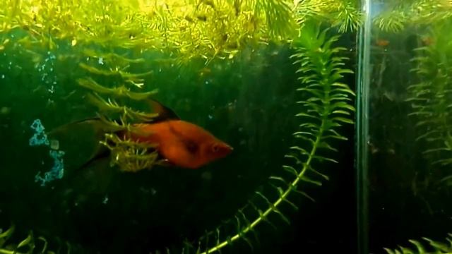 Меченосцы с мальками, которых не трогают.