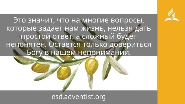 Ибо Ангелам Своим заповедает о тебе — охранять тебя на всех путях твоих: на руках понесут тебя, да не преткнешься о камень ногою твоею (Пс. 90:11, 12). Мы думаем, что Всевышний должен оберегать Своих детей от всех проблем, но невозможно жить на земле так, будто уже в раю, и утверждение «на руках своих понесут тебя» нужно рассматривать как поэтическое преувеличение. Прежде всего этим утверждением псалмопевец призывает сосредоточиться не на трудностях, а на Боге, сердцем успокоиться в Нем, увидеть Его величие, укрепиться доверием к Нему. Мир в душе — это не отсутствие трудностей, но присутствие покоя Божьего в сердце, даже в самых трудных обстоятельствах, когда Бог успокаивает душу и насыщает нас Собой. «Ангелы понесут» — все, что приходит в нашу жизнь, происходит по Его воле нам во благо, хотя мы можем ничего не понимать. Иисус говорит ученикам: «Многое имею сказать вам; но вы теперь не можете вместить» (Ин. 16:12). Это значит, что на многие вопросы, которые задает нам жизнь, нельзя дать простой ответ, а сложный будет непонятен. Остается только довериться Богу в нашем непонимании. В этом случае непонимание должно быть поводом для доверия, а не сомнения. Это как дети, которые многого не понимают из жизни взрослых, да и мы сами многое скрываем от них из благих побуждений — придет время, все поймут. «Ангелы понесут» — это значит, что испытания даются по силам человека и ему во благо. Божий промысел заранее неизвестен, и пути Господни неисповедимы. Но Бог человеколюбив, придет время, и с вершины истории мира мы посмотрим назад и увидим, как ангелы несли нас. Когда мы в Божьих руках, благодать дает силы встретить скорби. В немощах проявляется Божья сила. Чем труднее, тем больше дает Бог благодати. Мы осмеливаемся жить в послушании Богу, потому что знаем, что вечная Божья рука поддержит нас, как сказано: «На руках понесут тебя, да не преткнешься о камень ногою твоею». https://esd.adventist.org/library/periodicals/ezhednevnyie-chteniya/ #адвентисты #АдвентистыСедьмогоДня #Церковь #ЦерковьАдвентистовСедьмогоДня #ЦерковьХристианАдвентистовСедьмогоДня
