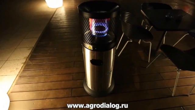 Мощность - 3-6 кВт, расход газа - 218-437 г/час, время работы - 25-50 часов (с 27 лит. баллоном), подключение баллонов от 5 до 27 лит., диаметр рефлектора - 50 см, дальность обогрева - 5 метров, возможность изменения направления обогрева, материал - нержавеющая полированная сталь, пьезорозжиг, датчик наклона, датчик затухания, датчик давления, колеса для транспортировки, система защиты от ветра, контейнер оборудован дверцей, в комплекте чехол для защиты от атмосферных воздействий, вес - 14,9 кг. http://www.agrodialog.ru/internet-magazin/ulichnie-obogrevateli/4009/
