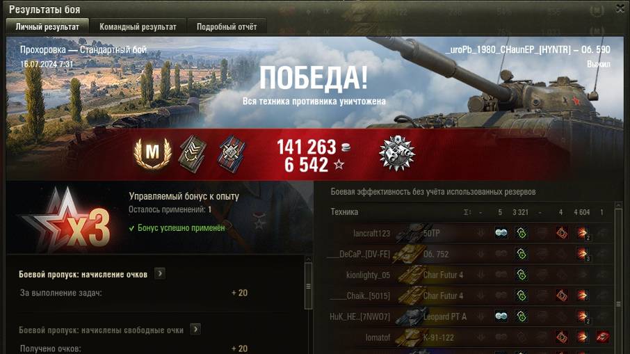 ПРОХОРОВКА МАСТЕР на Об. 590 ОПЫТ: 1430 СУММАРНЫЙ УРОН: 7925 медаль ДОЗОРНЫЙ