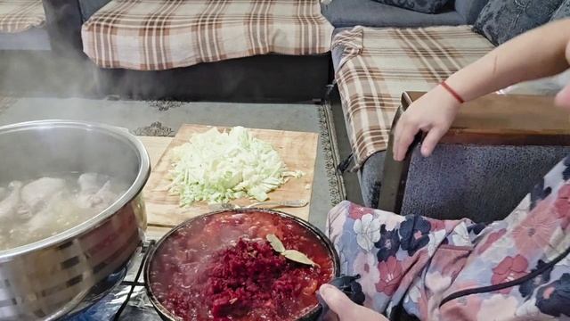 салат, борщ, спагетти и итальянскОе чахохбили по русски