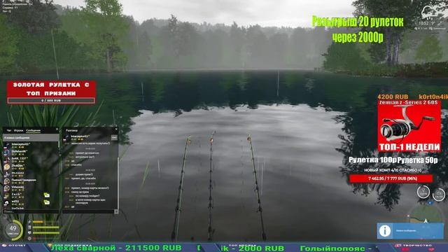 Поддержка донатом https://new.donatepay.ru/@1032463 Альтернативный донат https://www.donationalerts.com/r/kalyamba11 5536913964533059 карта Тинькоф Если стрим лагает,смотри стрим на трово https://trovo.live/s/Kalyamba_na_Ribalke Тг https://t.me/kalyamba_na_ribalke Мой ВК - https://vk.com/kalyantv НИК в игре kalyan11 НАШ ДС https://discord.gg/4ZzSQkQtsK Заказ водоема на 1 час - 500р ( весь стрим 2500р ) Модерка на канале 1300р ( каждая следующая на 100р больше) ✅Призы в рулетке "ЗОЛОТАЯ" 500р ✔ ЗОЛОТО ✔ ПРЕМ ✔ КАТУШКИ РАПТОР 40, ВЕНГИ, ТАЙГА, СИЛЬВЕР 80, И другие ✔ ПАЛКИ ПИЛКЕРНАЯ, ДОНКА МОРСКИЕ, ✔ РОД ПОД, СТУЛЬЯ ✅Призы в рулетке СТАНДАРТ : 100р ✔ катушкИ РАПТОР 40, ВЕНГИ, ТАЙГА, СИЛЬВЕР 80, И другие ✔ катушки 60 для медного ( ЭВИИ, НАТОРЫ, ГОЛДА, и тд) ✔ ПИЛКЕРНОЕ УДИЛИЩЕ КОРОЛЕВА ОКЕАНА ✔ Морское Донное удилище ✔ прем ( 3, 7, 30 дней) ✔ золото ( 1, 3, 5, 10, 20 ,50) ✔ билет на море ( 1, 3, 5 дней) ✔ голд наживка и др. ✅Призы в рулетке "СТАРТОВАЯ" 50р ✔ катушка Венга ✔ катушка "silver80" ✔ катушка "БЕЛЫЙ КАЛИБР" ✔ катушка "Черный калибр" ✔ катушка "Протон" ✔ катушка "Нарга 6000" ✔ Набор Фидерист и спинингист ✔ Карповик Фортуна ✔ фидерные удилища ✔ прем, золото, алкашка, наживки и тд P.s Рулетка это не казино, а награда за поддержку стримера. Вечный ТОП ПОДДЕРЖКИ (10.06.2025) 1. Леха сварной 214 572 2. Dimon_pokemonchik 127 034 3. Skreb79 103 061 4. Interceptor 96 230 5. FishRus86 82 500