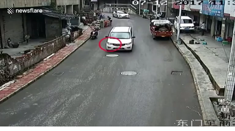Камера видеонаблюдения в Китае зафиксировала момент, когда был нанесен удар по голове стеклянной бутылкой, которая вылетела с дороги, когда его сбил автомобиль. Случай произошел в провинции Гуйчжоу, микроавтобус проезжает по пустой бутылке, которая потом взлетает в воздух, где она попадает вскользь в голову мальчику. К счастью, ребенок серьезно не пострадал, в результате несчастного случая он получил ссадину на голове.