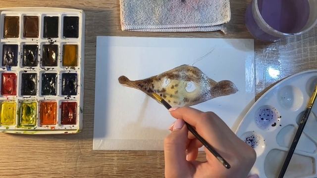 Как нарисовать ската карандашом и акварелью начинающим | Рисунок для детей